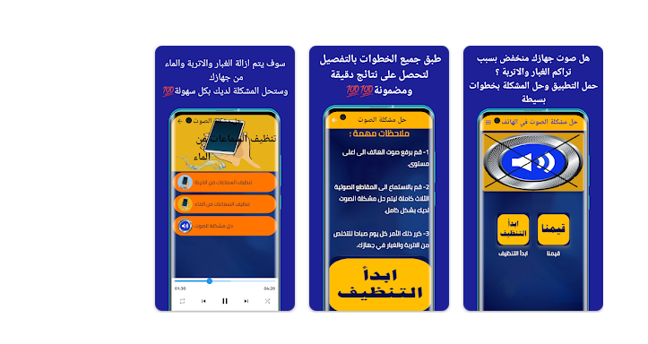 واستخدام التطبيق سهل وبسيط، مما يجعله متاحاً لجميع المستخدمين، حتى أولئك الذين ليس لديهم خبرة تقنية متقدمة، فكل ما عليك فعله بالبدء برفع مستوى الصوت إلى أقصى حد ممكن لتفعيل قدرة التطبيق على تنظيف السماعة بفعالية، ومن ثم الاستماع إلى المقاطع الصوتية التي تم تصميمها بعناية لتغطية جميع الترددات اللازمة لتنظيف السماعة، و بعد الانتهاء من الاستماع إلى المقاطع، ستلاحظ فوراً تحسناً ملحوظاً في جودة الصوت، مما يدل على نجاح عملية التنظيف.