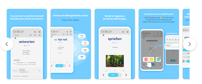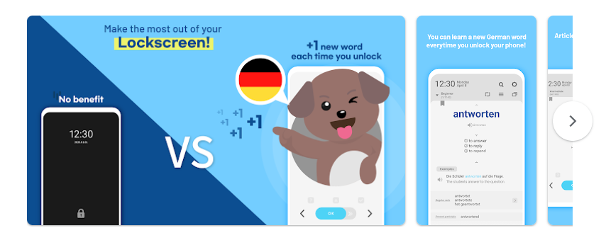 هذا التطبيق المبتكر يستخدم شاشة القفل الخاصة بك لتحويلها إلى فرصة لتعلم اللغة الألمانية. بمجرد أن تلقي نظرة سريعة على هاتفك، يقوم التطبيق بتوجيه انتباهك نحو دراسة اللغة الألمانية لفترة قصيرة، وهذا يعني أنه بينما تستخدم هاتفك لأشياء يومية مثل التحقق من الرسائل أو مشاهدة مقاطع فيديو على YouTube، يمكنك أيضًا دراسة الكلمات والجمل الألمانية.